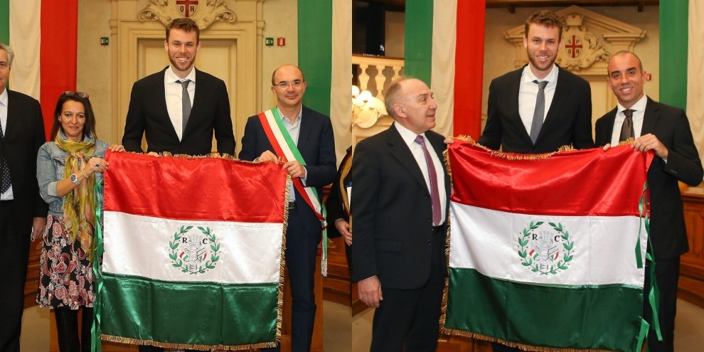 Il cestista dell'Olimpia Milano ha ricevuto il premio 'Primo Tricolore' direttamente dal sindaco della sua città natale