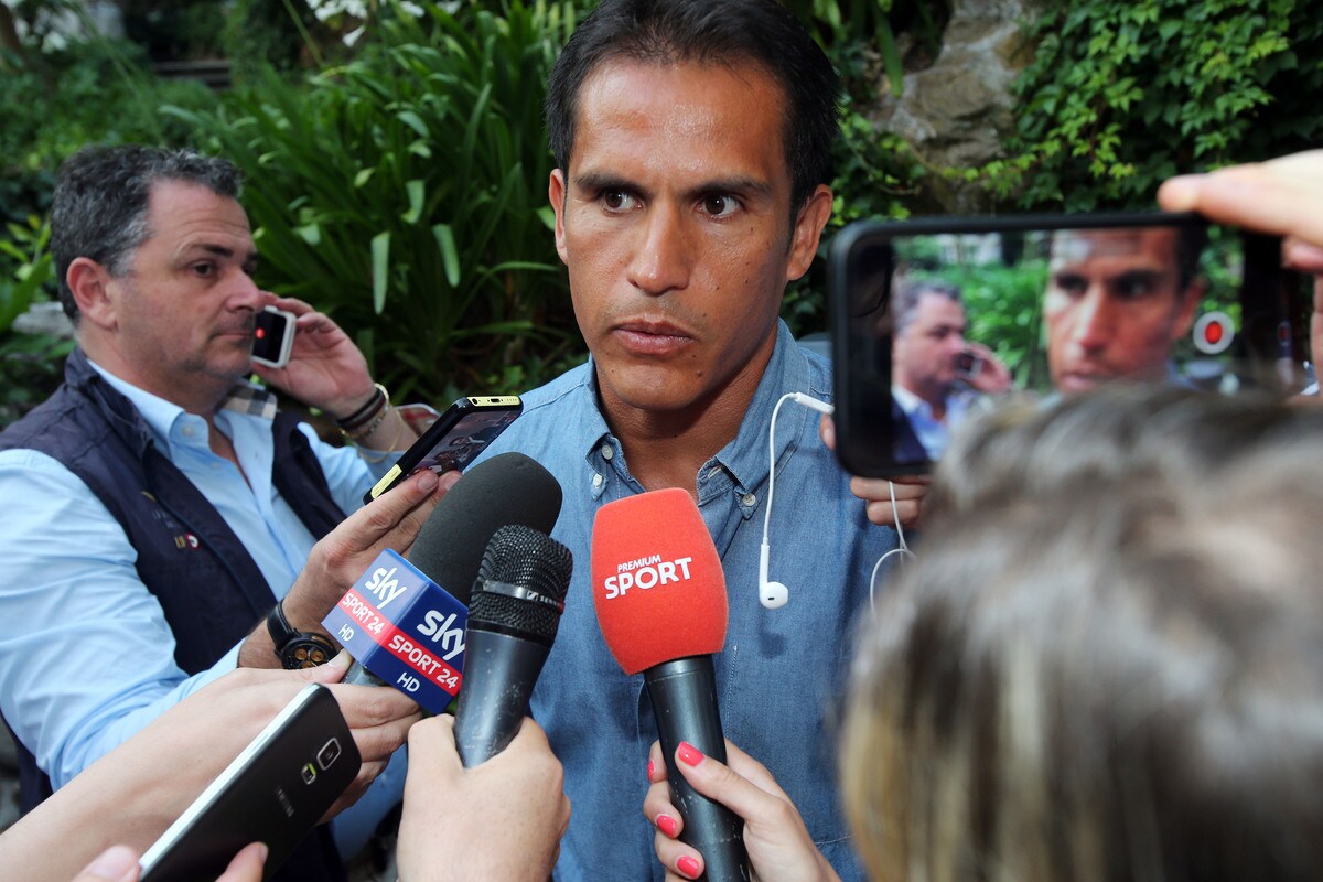 Conferenza stampa all'Hotel de Russie a Roma del centrocampista italo-argentino che saluta il club biancoceleste