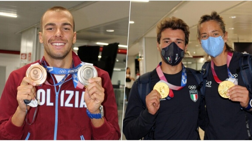 Il nuotatore azzurro, vincitore di un argento e un bronzo, è rientrato da Tokyo 2020 insieme alla coppia d'oro della vela: ad attenderli all'aeroporto c'erano parenti, amici e i rispettivi gruppi sportivi