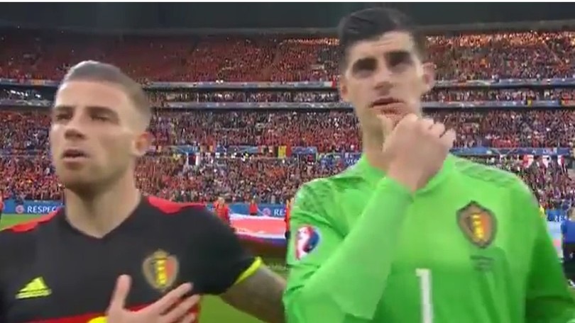Belgio, il "vizietto" di Courtois: tocco al mento durante l'inno